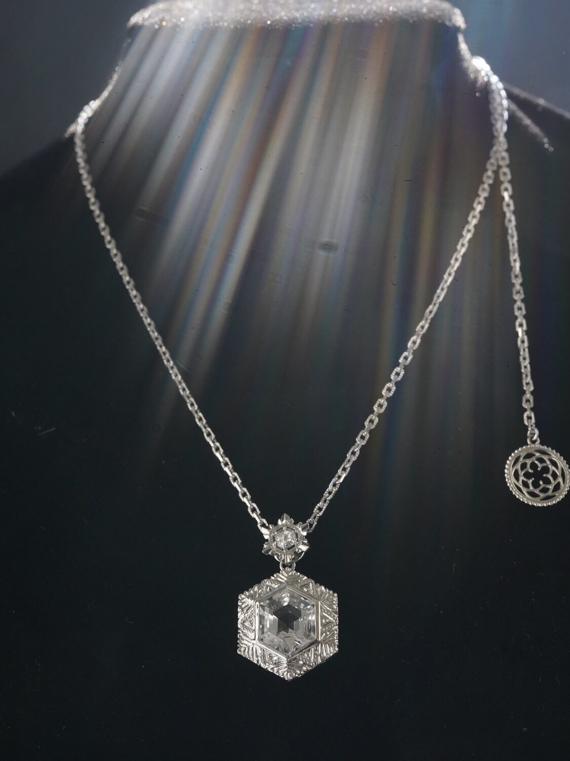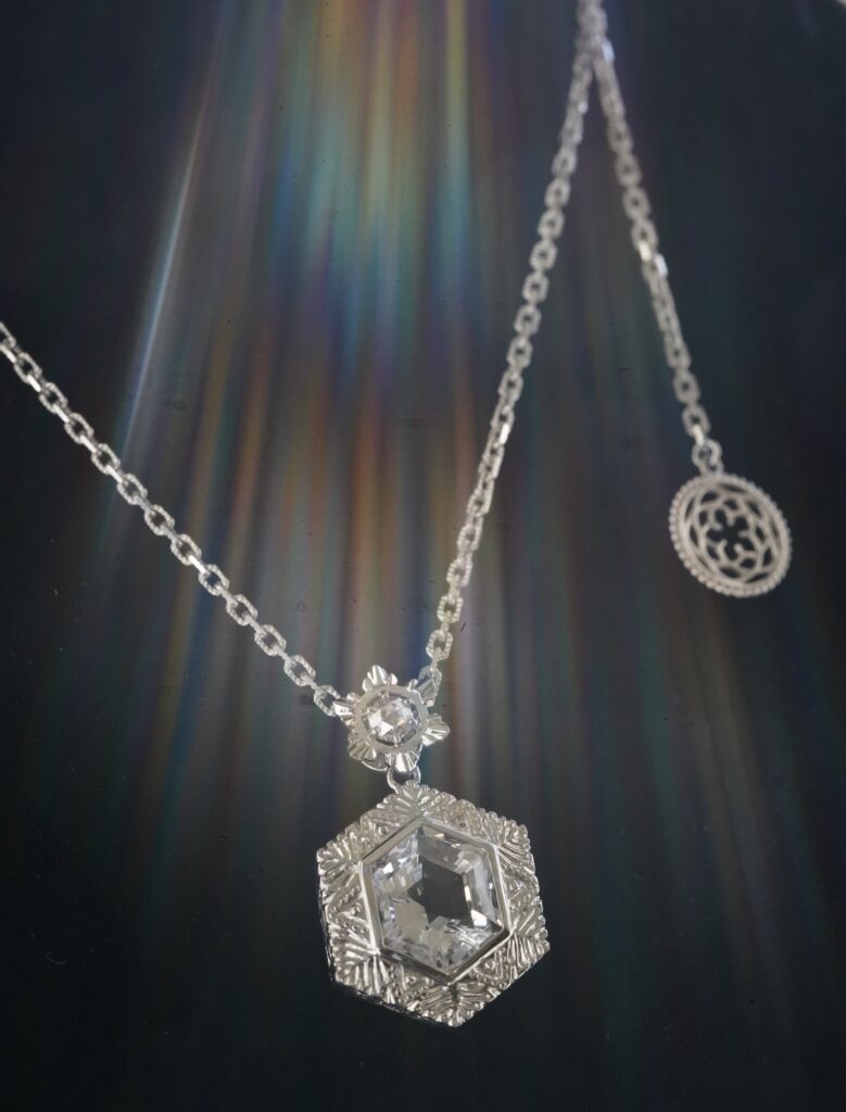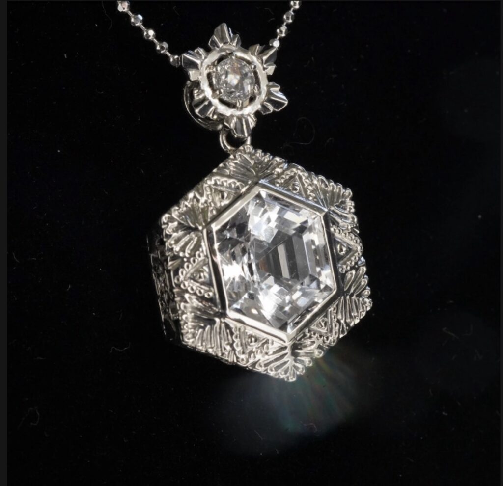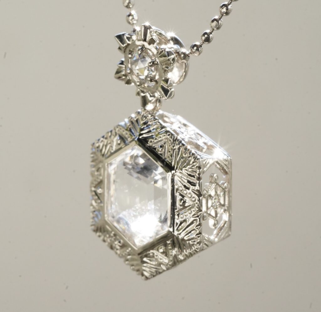 という言葉をかけて出来た結晶イメージを透かし模様で表現。