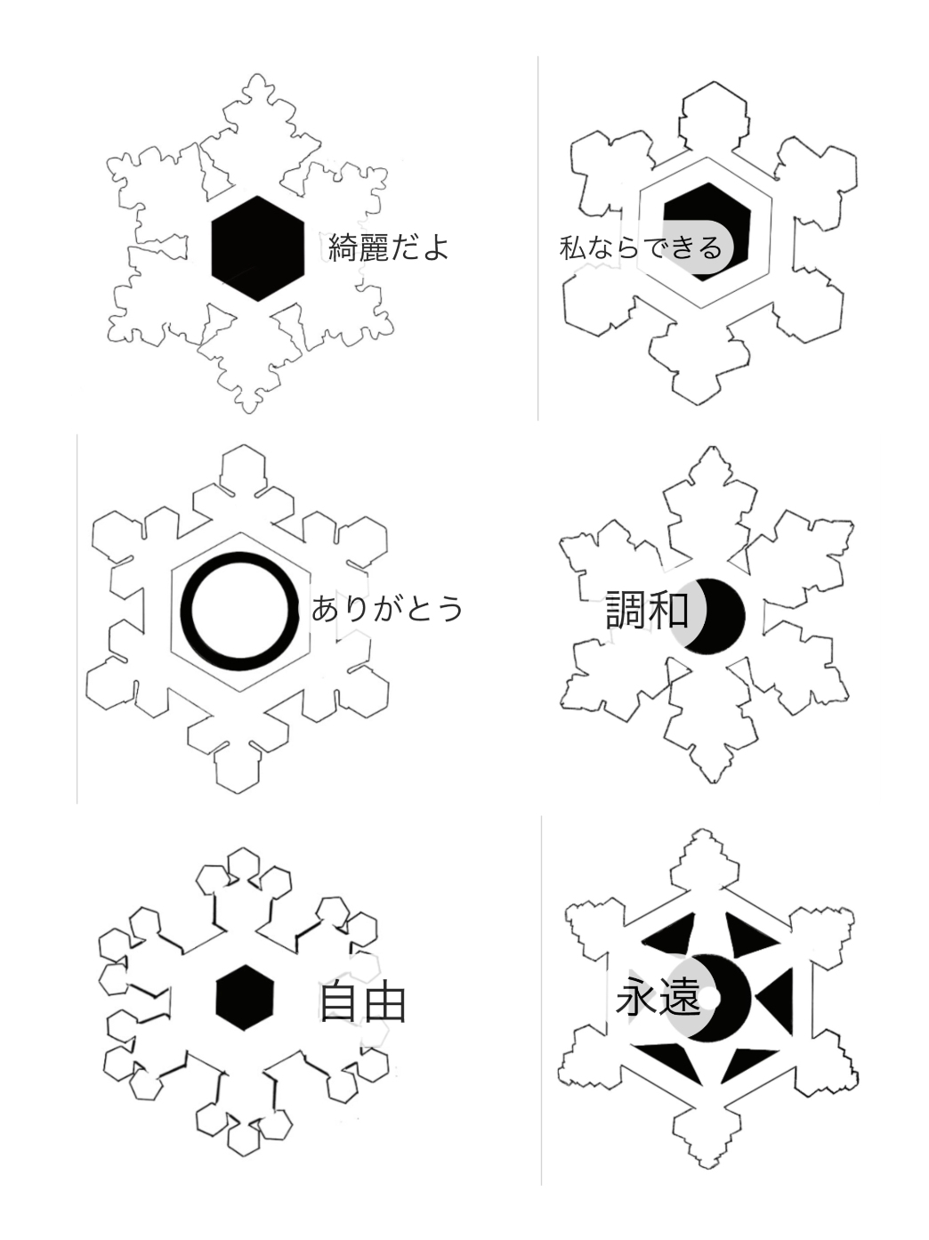 水の結晶は中心が六角形であることや(これも偶然とは思えない程の一致でした)、いくつかのパターンや秩序があることが分かってきたので、
