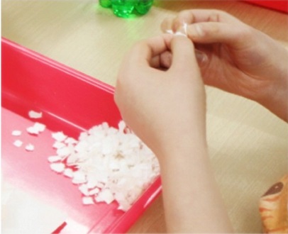 渋谷区の福祉施設内の“広尾ジョイワーク(就労継続支援B型)”で制作しています。この事業所では長年このような「リサイクル・再生」をテーマにした、地道なモノ作りに取り組んでいて、何か力になれないかと、2017年から商品開発やデザインのサポート活動を続けています。